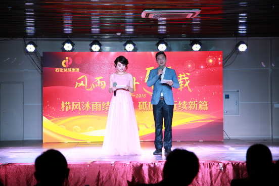 2016年12月25日,在石化發(fā)展集團成立15周年這個喜慶的日子,石化發(fā)展集團組織舉辦了以“櫛風沐雨結碩果 砥礪前行續(xù)新篇”為主題的慶祝活動?;顒拥墓?jié)目均由石化發(fā)展集團系統(tǒng)員工自編自演,形式多樣并且貼合工作實際,石化發(fā)展集團、環(huán)保發(fā)展公司、基建公司、實業(yè)公司全體人員,以及石化投資公司、應急管理公司共同為石化區(qū)開發(fā)建設管理揮灑汗水的嘉賓和同仁參加活動,歡聚一堂共同慶賀石化發(fā)展集團成立15周年!